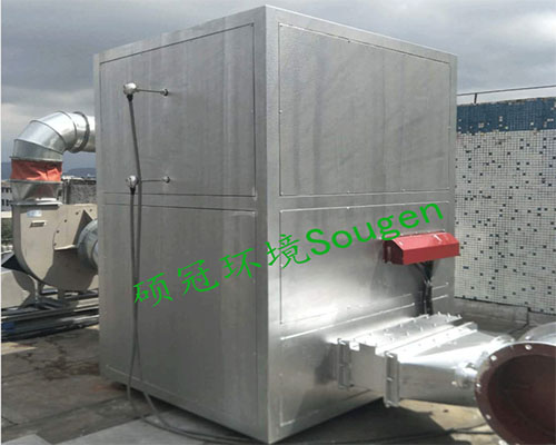 在將廢氣進行催化凈化的過程中,廢氣經管道由風機送入熱交換器,將廢氣加熱到催化燃燒所需要的起始溫度。經過預熱的廢氣,通過催化劑層使之燃燒。由于催化劑的作用,催化燃燒法廢氣燃燒的起始溫度約為250~400攝氏度,大大低于直接燃燒法的燃燒溫度650~800攝氏度,高溫氣體再次進入熱交換器,經換熱冷卻,終以較低的溫度經風機排入大氣。
